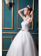 If you are looking for the quintessential fairytale ball gown, look no further than this strapless one! Lavish accents dominate the style of the form-fitting bodice, which has a chic sweetheart neckline and a symmetrical dropped waistline which has a big cristal bead on it. Yards of straight, whisper-thin material flare out beguilingly on the skirt, which sweeps to the floor.