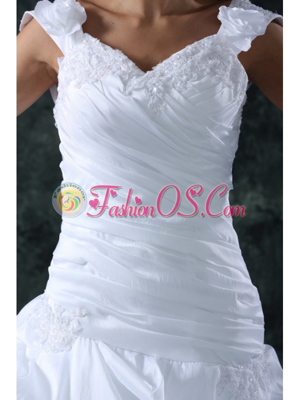 Elegant Ball Gown V-Neck Taffeta Appliques Wedding Dress