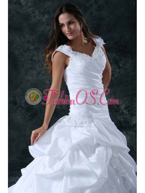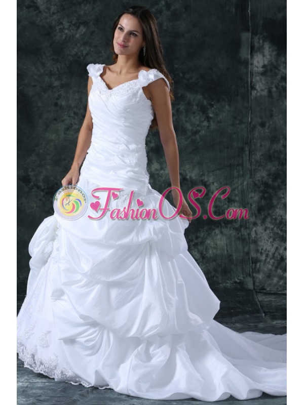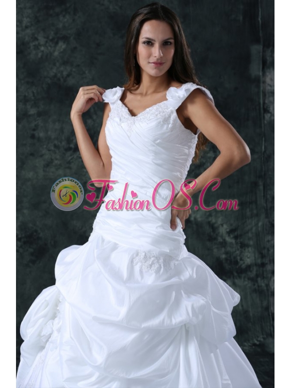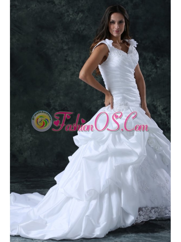 Home >  Wedding Dresses >  Perfect Wedding Dresses > Elegant Ball Gown V-Neck Taffeta Appliques Wedding Dress