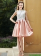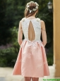 Elegant Bateau Open Back Applique Short Prom Dress in Pink
