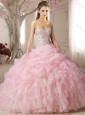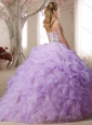 Elegant Beaded and Bubble Sweep Train Quinceanera Dress in Lavender