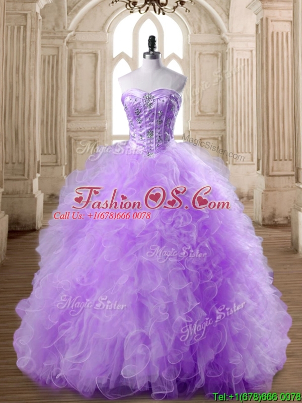 Elegant Beaded and Ruffled Lavender Quinceanera Dress in Tulle