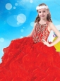 Home >  Special Occasion Dresses >  New Style Little Girl Pageant Dresses > Elegant Beaded and Ruffled Red Little Girl Pageant Dress with Square