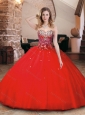Elegant Beaded Bodice Tulle Princesita Quinceanera Dresses in Red