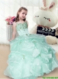Elegant Beading and Appliques Little Girl Pageant Dresses in Apple Green for 2016