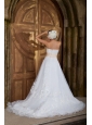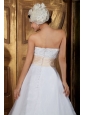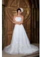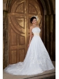 Elegant Beautiful A-line Strapless Wedding Dress Organza Embroidery Court Train