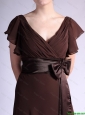 Elegant Belt and Bowknot Brown Prom Dresses with Brush Train