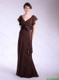 Home >  Prom Dresses >  Modest Prom Dresses > Elegant Belt and Bowknot Brown Prom Dresses with Brush Train