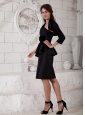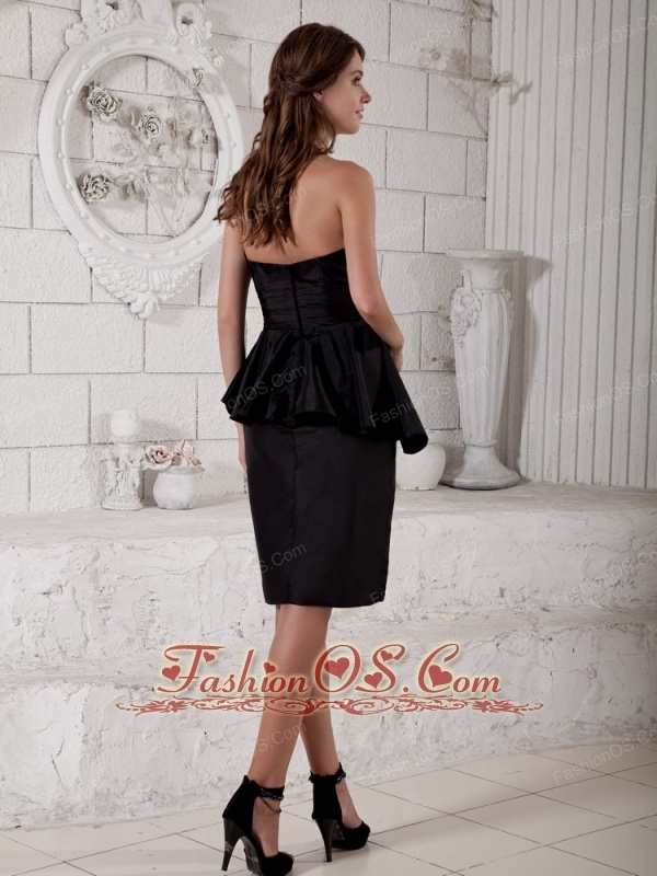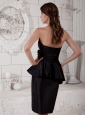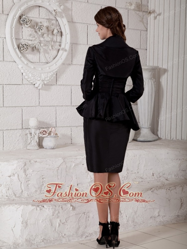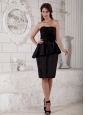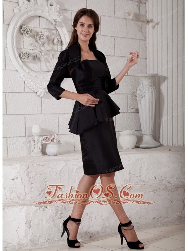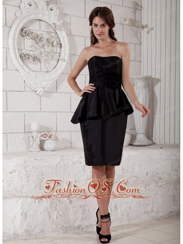 Elegant Black Column Mother of the Bride Dress Strapless Hand Made Flower Knee-length Satin
