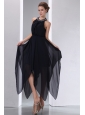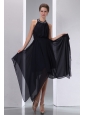 Elegant Black Empire Halter Asymmetrical Evening Dress Chiffon Beading