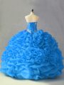 Elegant Blue Lace Up Sweetheart Beading and Pick Ups and Hand Made Flower 15 Quinceanera Dress Organza Sleeveless