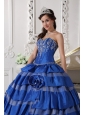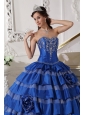 An absolutely perfect gown when looking your best is a must! This gorgeous quinceanera dress is accented with flora embroidery appliques and bonings and a modest sweetheart , which can show off your curve. The marvelous ball gown features a long and winding series of ruffles, which adds its overall fullness adorned with some flower in a blosom. Turn heads in sophisticated quinceanera royal blue dress!