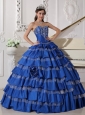 Elegant Blue Quinceanera Dress Sweetheart Taffeta Embroidery Ball Gown