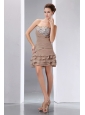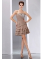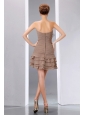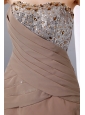 Home >  Prom Dresses >  Short Prom Dresses > Elegant Brown A-line Short Prom Dress Strapless Mini-length Beading and Sequins Chiffon