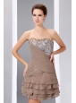 Elegant Brown A-line Short Prom Dress Strapless Mini-length Beading and Sequins Chiffon