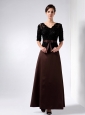 Home >  Special Occasion Dresses >  Mother of the Bride Dresses > Elegant Brown Mother Of The Bride Dress Column V-neck Beading Ankle-length Satin