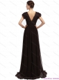 Elegant Cap Sleeves and Brush Train 2015 Prom Dress in Black