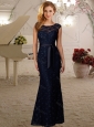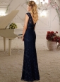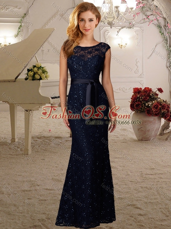 Elegant Cap Sleeves Column Laced Cheap Dama Dress with Beading and Belt