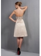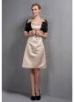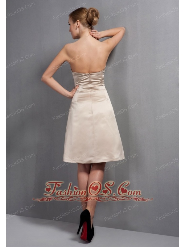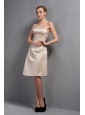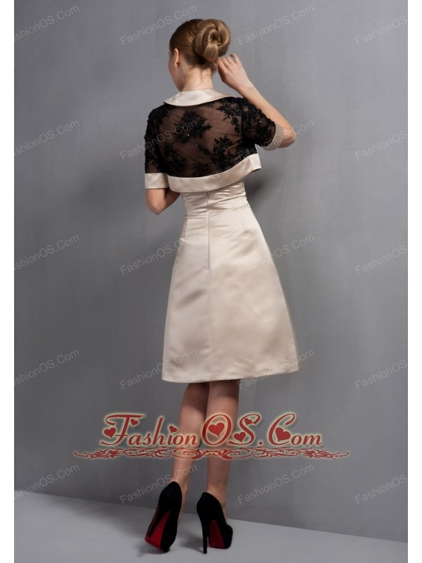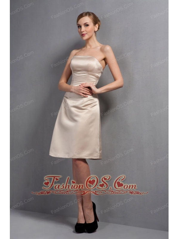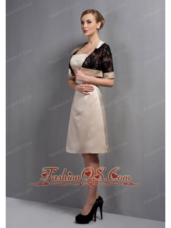 Elegant Champagne A-line Mother Of The Bride Dress Strapless Hand Made Flowers Knee-length Satin