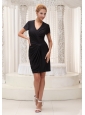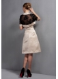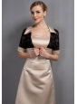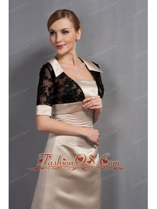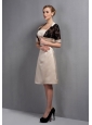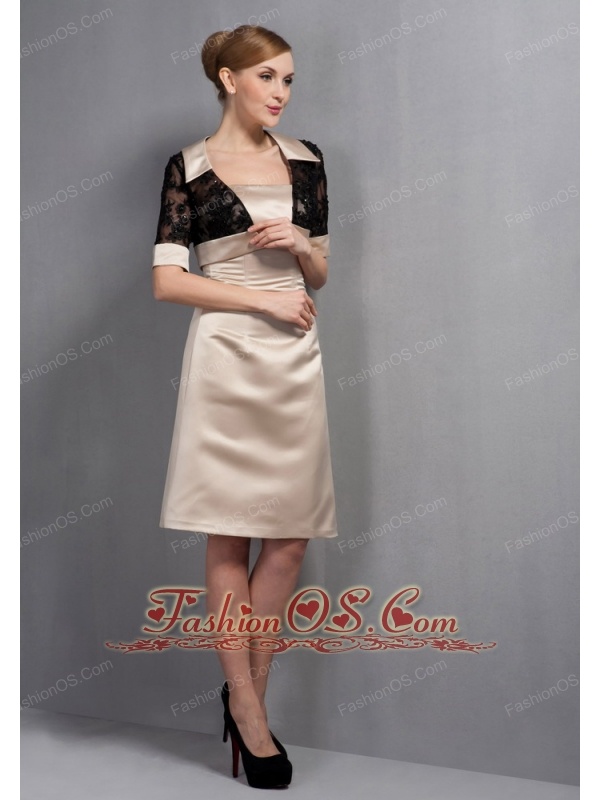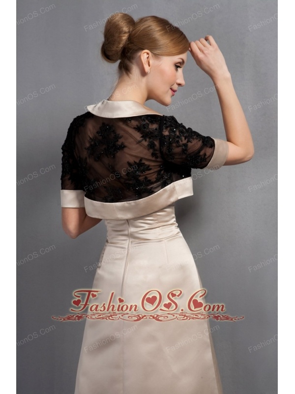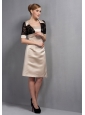 Are you looking for an elegant suitable dress for your daughter's big day? This dress must just be the one you want. The fitted bodice and ruched waist will curve your figure and the knee-length A-line skirt will show off your elegance and modesty. The half-sleeves matching jacket is special designed, using the art of contrasting colors, black and champagne. The hidden zipper on the back allows easy off and on and secures the dress in place.