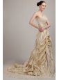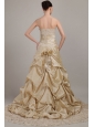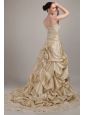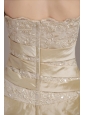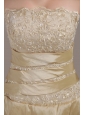 Elegant Champagne A-line / Princess Strapless Court Train Taffeta Wedding Dress