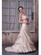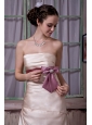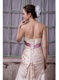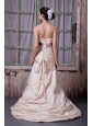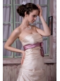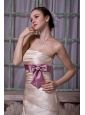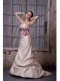 Elegant Champagne Bridesmaid Dress A-line / Princess Strapless  Belt and Beading Satin Brush Train