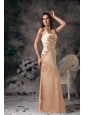 Home >  Bridesmaid Dresses >  Elegant Bridesmaid Dresses > Elegant Champagne Column Bridesmaid Dress Halter Satin Ruch Floor-length