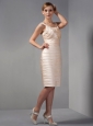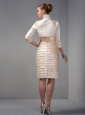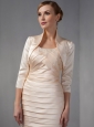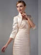 Elegant Champagne Column Mother Of The Bride Dress Scoop Beading and Ruch Knee-length Taffeta
