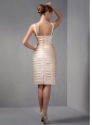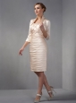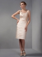 Home >  Special Occasion Dresses >  Mother of the Bride Dresses > Elegant Champagne Column Mother Of The Bride Dress Scoop Beading and Ruch Knee-length Taffeta