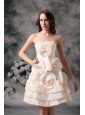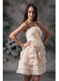 Elegant Champagne Strapless Short Prom / Homecoming Dress Mini-length Organza