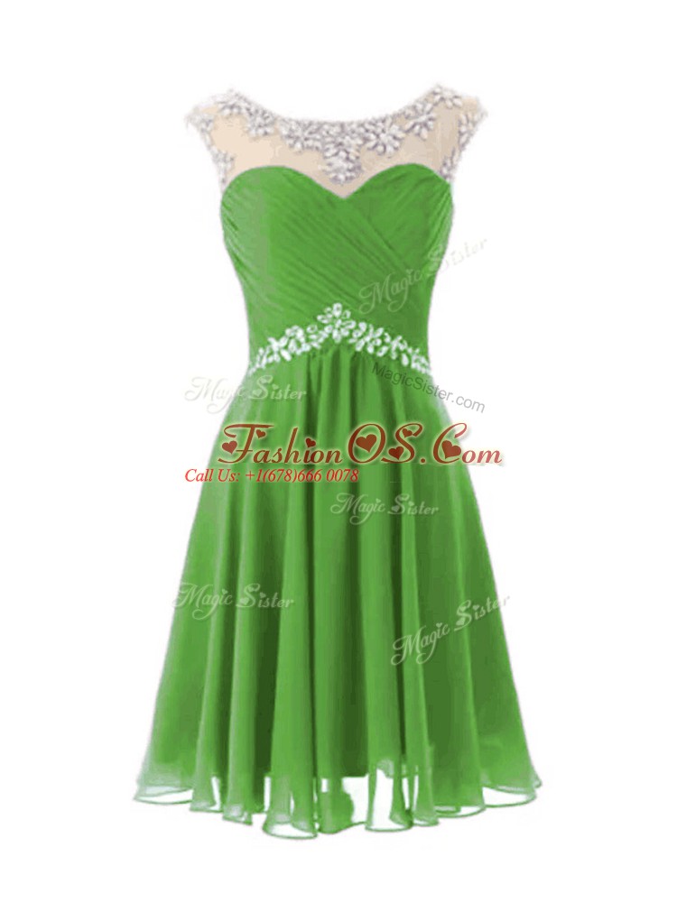 Elegant Chiffon Zipper Cap Sleeves Knee Length Beading