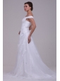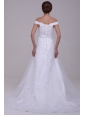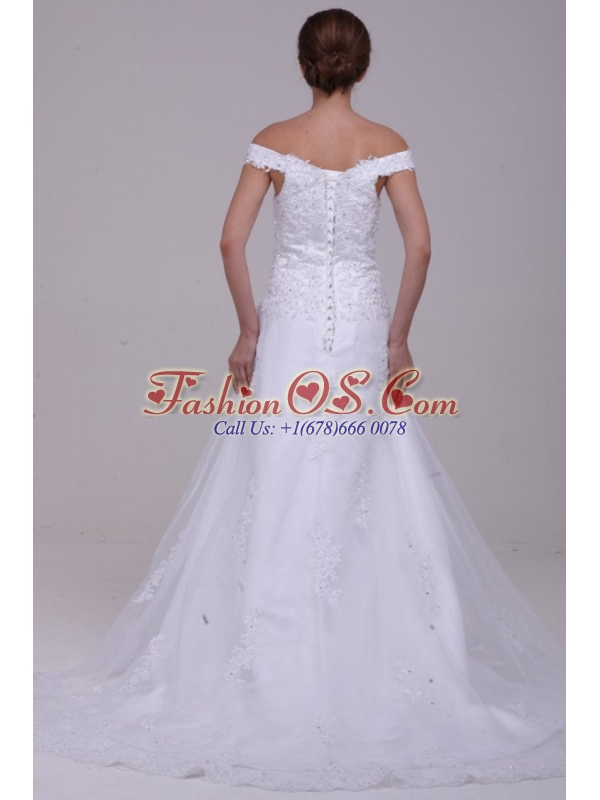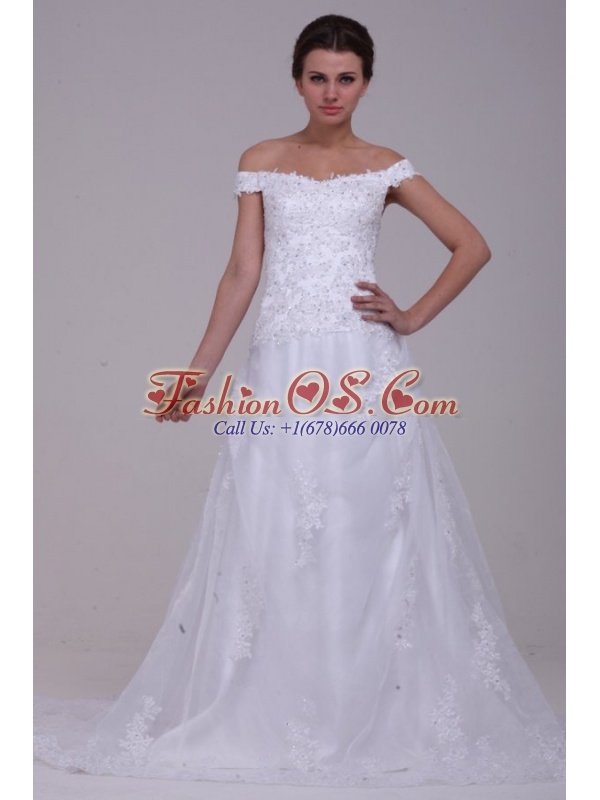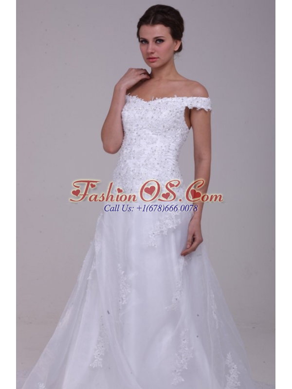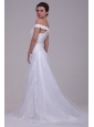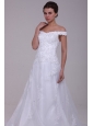 Elegant Column Off The Shoulder Appliques Organza 2014 Wedding Dress