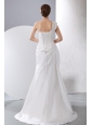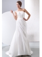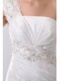 Home >  Wedding Dresses >  Latest Wedding Dresses > Elegant Column One Shoulder Court Train Taffeta Appliques With Beading Wedding Dress