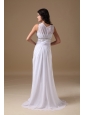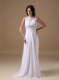 Elegant Column Scoop Brush Train Chiffon Beading Wedding Dress