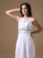 Home >  Prom Dresses >  Modest Prom Dresses > Elegant Column Scoop Brush Train Chiffon Beading Wedding Dress