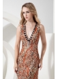 Home >  Prom Dresses >  Short Prom Dresses > Elegant Column / Sheath V-neck Beading Short Prom Dress Mini-length Leopard