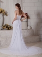 Elegant Column Strapless Beach Wedding Dress Court Train Chiffon Beading