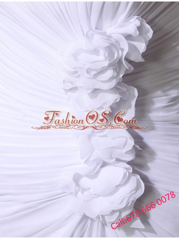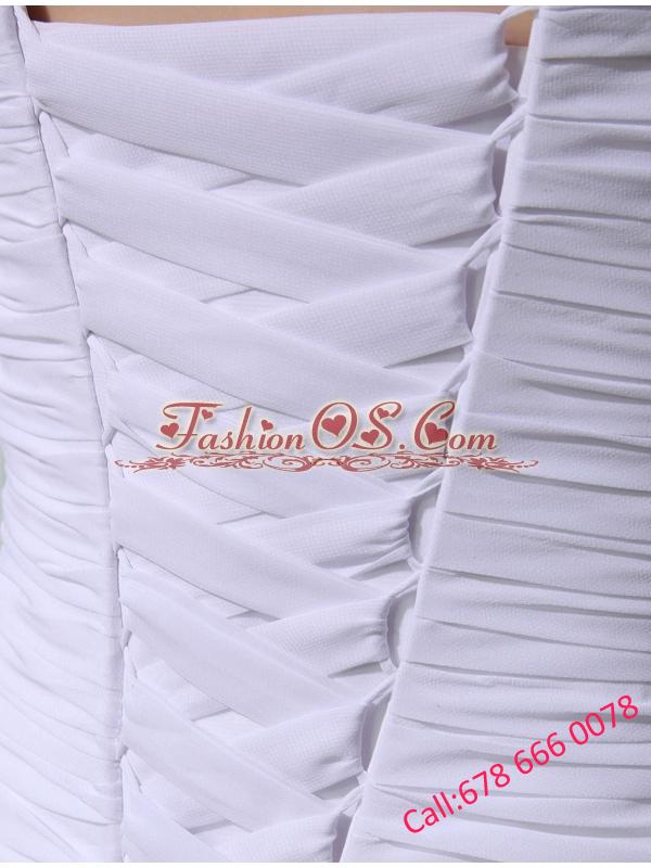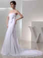 Home >  Wedding Dresses >  Perfect Wedding Dresses > Elegant Column Strapless Court Train Chiffon Ruching White Wedding Dress in 2014