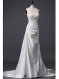 Home >  Wedding Dresses >  Perfect Wedding Dresses > Elegant Column Strapless Ruching and Appliques Wedding Dress with Court Train