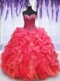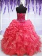 Elegant Coral Red Sleeveless Floor Length Beading and Ruffles Lace Up Sweet 16 Dresses