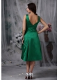 Home >  Bridesmaid Dresses >  Cheap Bridesmaid Dresses > Elegant Dark Green Knee-length Bridesmaid Dress A-line V-neck Satin Bow Tea-length