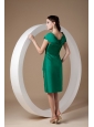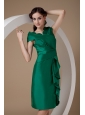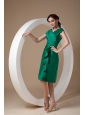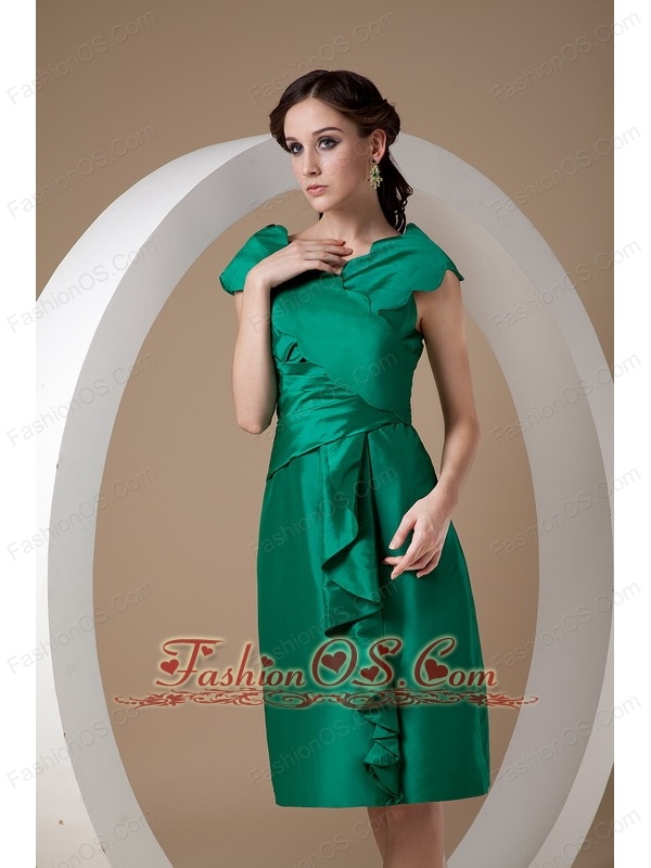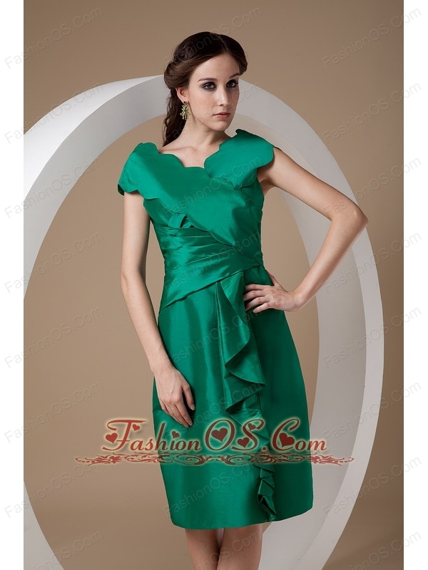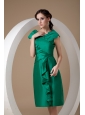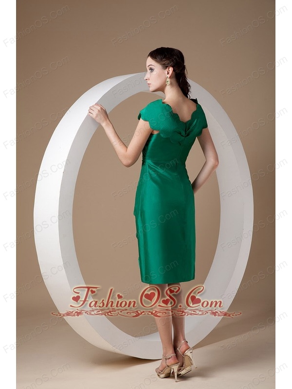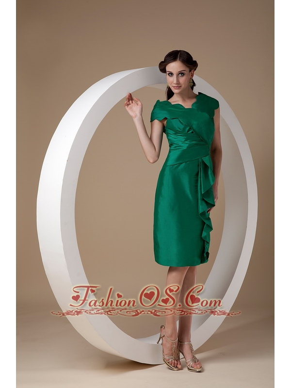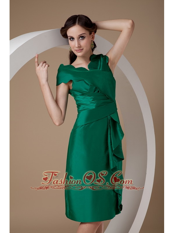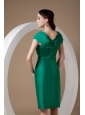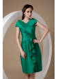 Elegant Dark Green Mother of the Bride Dress Column V-neck Taffeta Ruch Knee-length