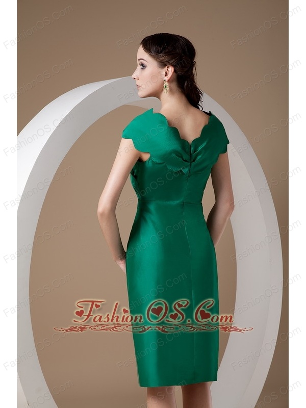 Home >  Special Occasion Dresses >  Mother of the Bride Dresses > Elegant Dark Green Mother of the Bride Dress Column V-neck Taffeta Ruch Knee-length