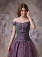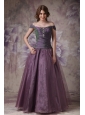 Home >  Prom Dresses >  Unique Prom Dresses > Elegant Dark Purple A-line Off The Shoulder Prom Dress Taffeta and Organza Beading Floor-length