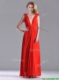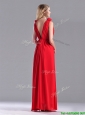 Elegant Deep V Neckline Red Bridesmaid Dress with Hand Crafted Flowers