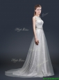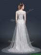 Elegant Empire Bateau Modest Prom Dresses  with Brush Train