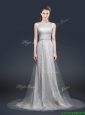 Home >  Prom Dresses >  Modest Prom Dresses > Elegant Empire Bateau Modest Prom Dresses with Brush Train
