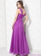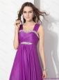 Elegant Empire Floor Length Prom Dress with Ruching and Beading
