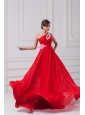 Elegant Empire One Shoulder Appliques Court Train Chiffon Red Prom Dresses