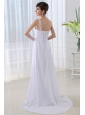Home >  Wedding Dresses >  Perfect Wedding Dresses > Elegant Empire One Shoulder Ruching Appliques High Slit Brush Train Wedding Dress